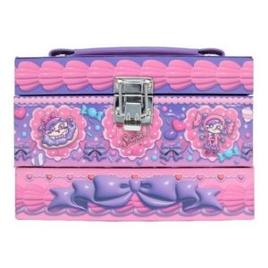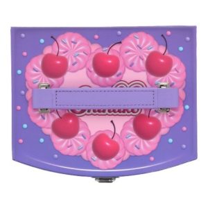 新商品は、まるでケーキのようなデザインがとってもキュートな「しなこちゃんコラボ メイクBOXセット」です。メイクBOXの中には、リップスティック、リップグロス、アイシャドウパレット、ホログラムシール、クリームチーク、前髪クリップ、指輪が入っており、豪華なアイテムが揃っています。さらに、内部にはミラーが付いており、BOXの内側はイチゴのケーキ風デザインになっていて、開けてもかわいい仕様。BOXは3段構造になっており、たくさん収納できます。持っているだけで毎日が楽しくなるメイクBOXセットです。